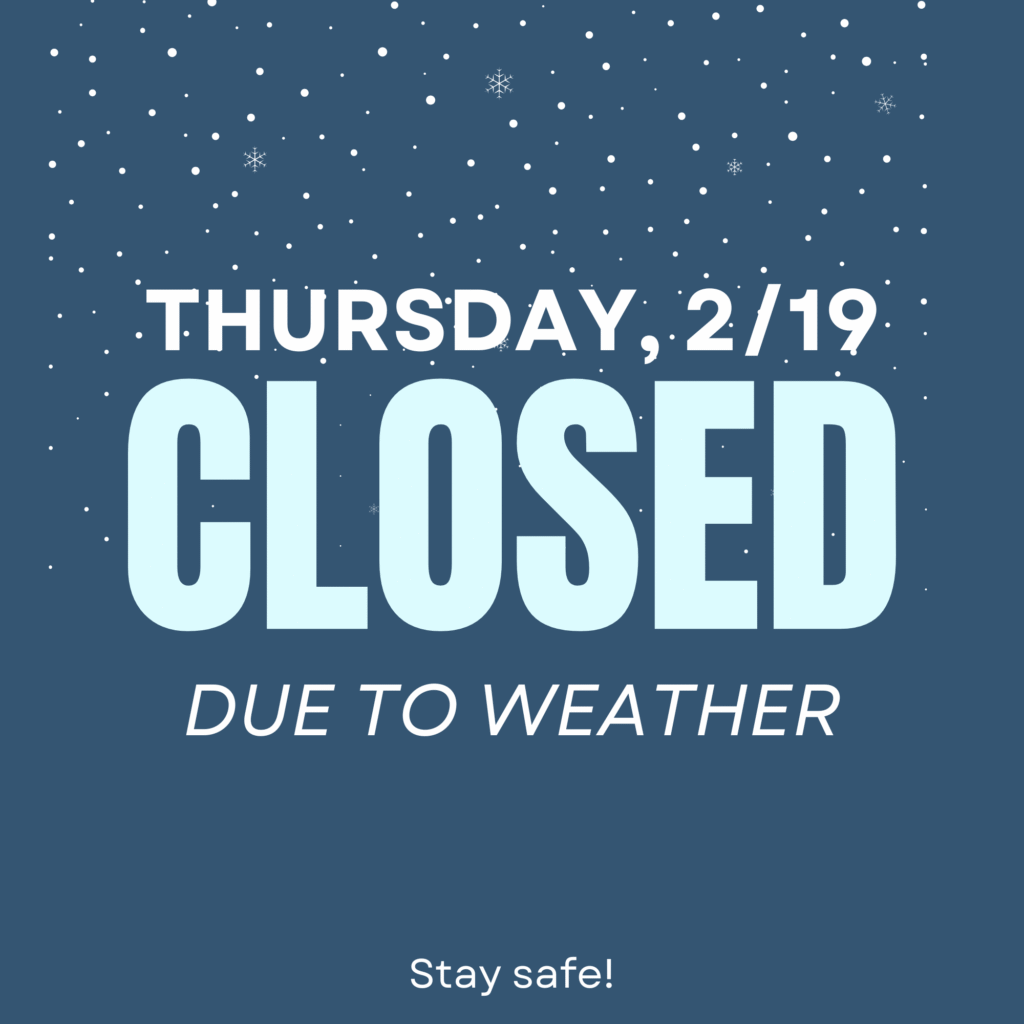 NOTICE: Due to worsening weather conditions, the shop will be closed today, 2/19. Stay safe!